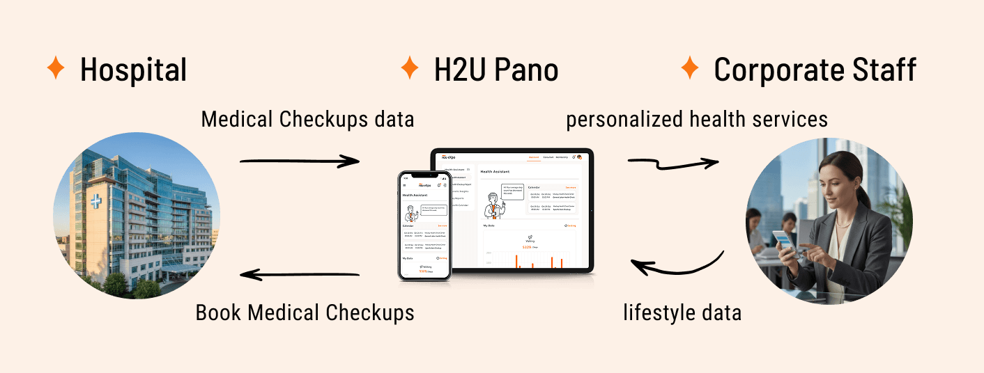 H2U Pano is a digital health platform (SaaS and mobile) that helps companies provide wellness benefits to employees by linking checkups and lifestyle data to personalized services.
